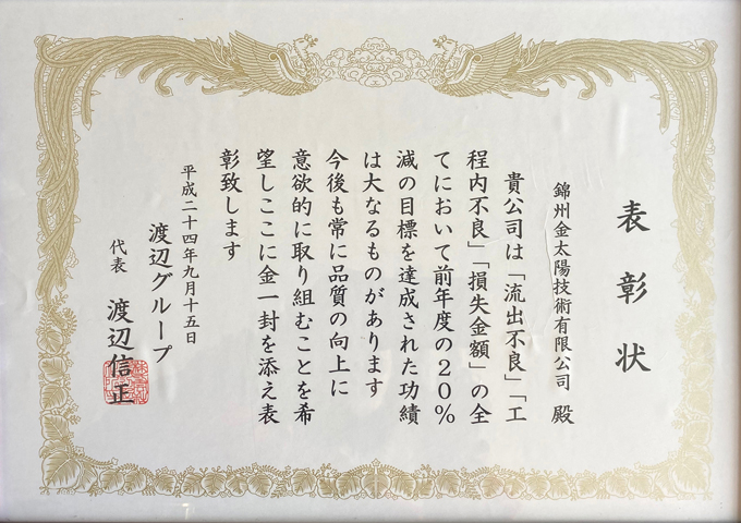 錦州金太陽技術(shù)有限公司は、株式會社渡辺製作所によって2001年8月に中國に設(shè)立された板金の設(shè)計?加工、技術(shù)サービスを従事する子會社です。